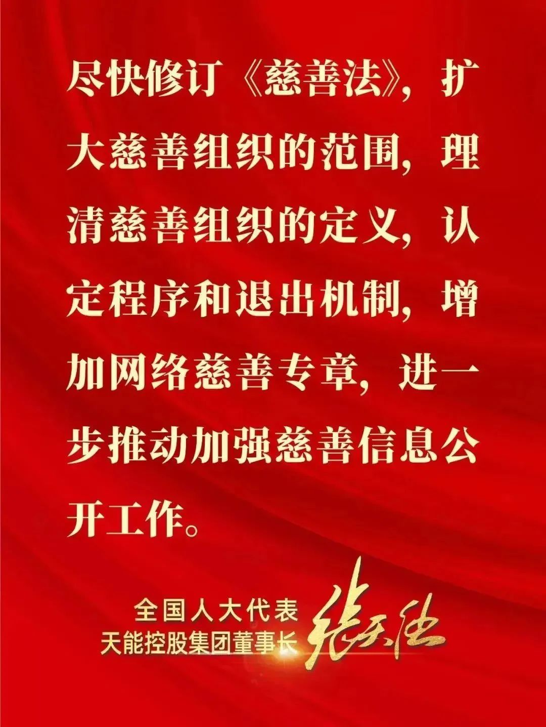 yabo.com热衷慈善,来自于“当家人”张董事长的慈善之心。作为中国新能源电池行业连续三届全国人大代表,张董事长向全国人大提交了200多份议案和建议,涉及慈善理念方面的乡村振兴、教育、养老的就超过了50件,不少议案和建议得到了全国人大及相关部委的积极回应和采纳。